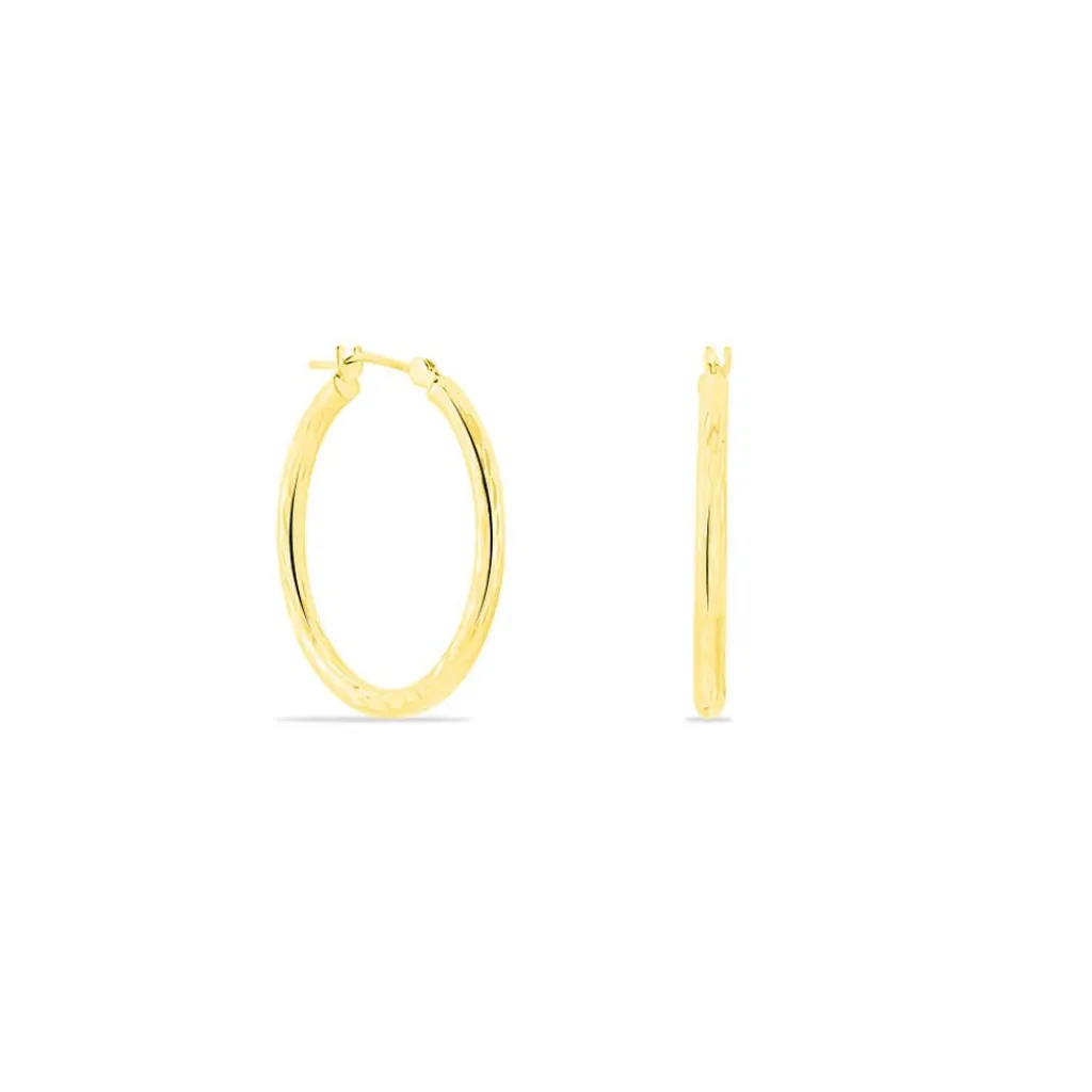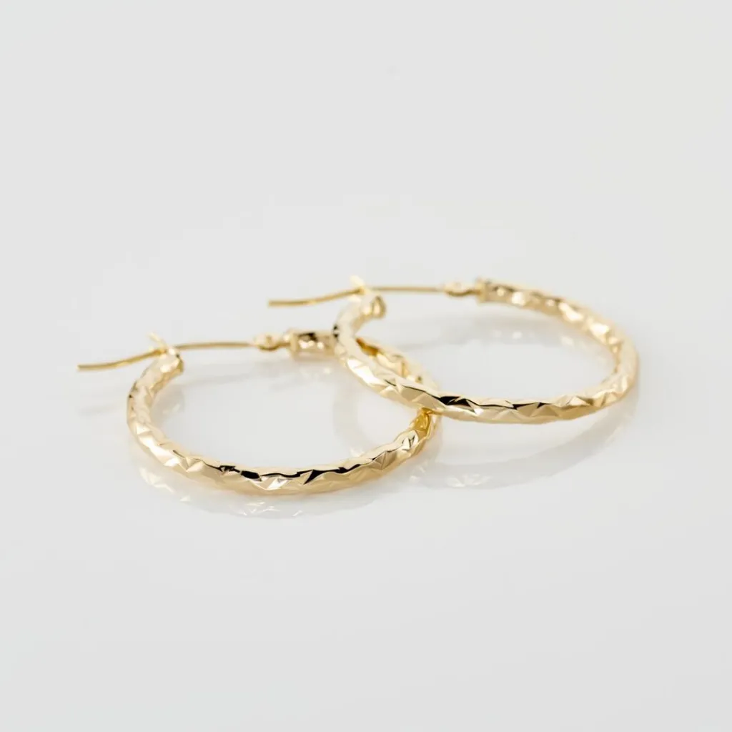 Créoles Or Jaune 375/1000 Fil Rond Effet Diamanté Largeur 2mm Diamètre 20mm
