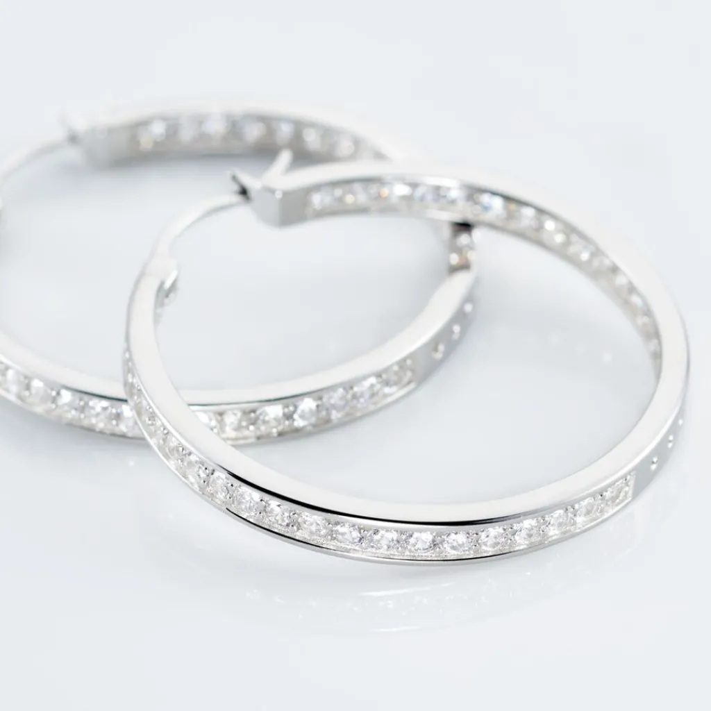 Créoles Classique Argent Blanc 925/1000 Oxydes De Zirconium Serti Griffes Diamètre 26mm