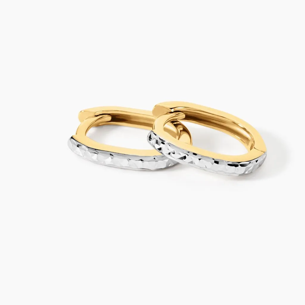 Mini Créoles Or Bicolore 375/1000 Diamante Largeur De Fil 1Mm Diametre 8Mm