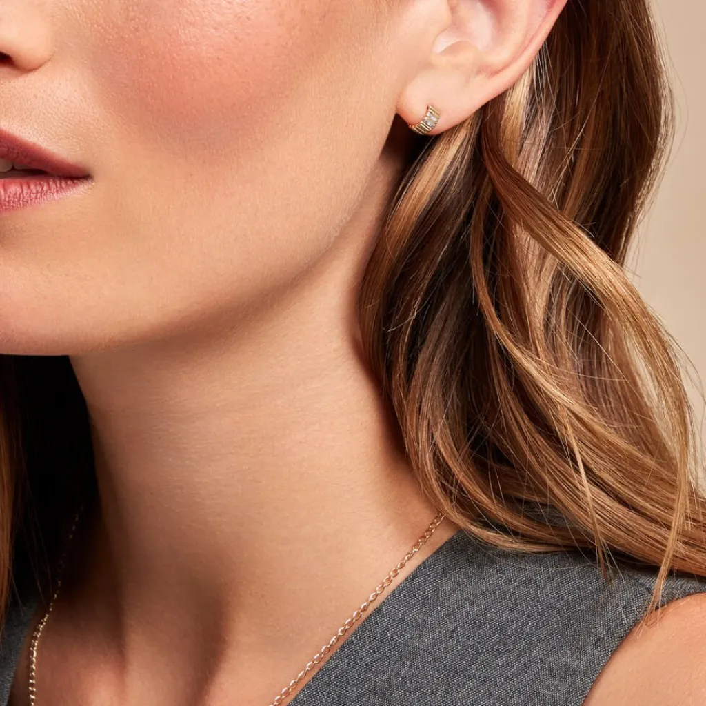 Creoles Or Jaune 375/1000 Rondes Striees Pavage Diamants Diametre 10mm