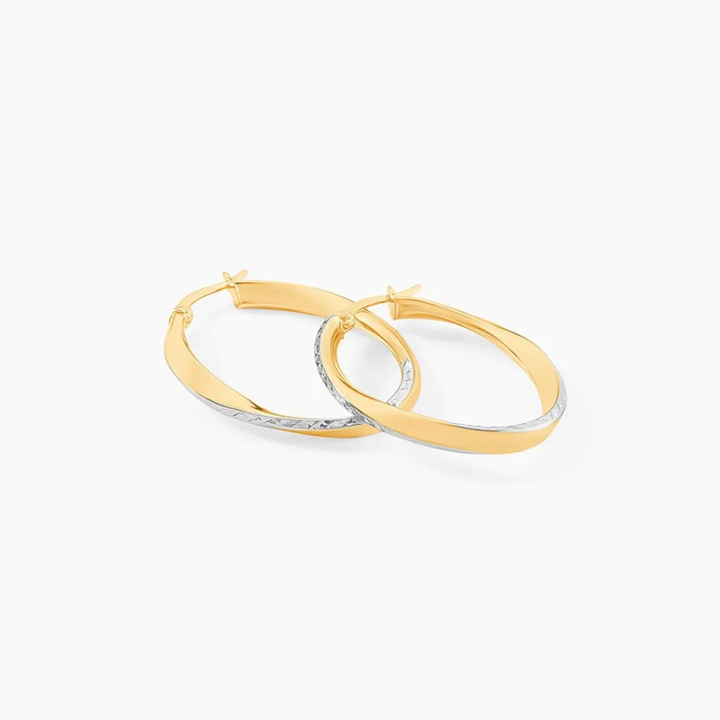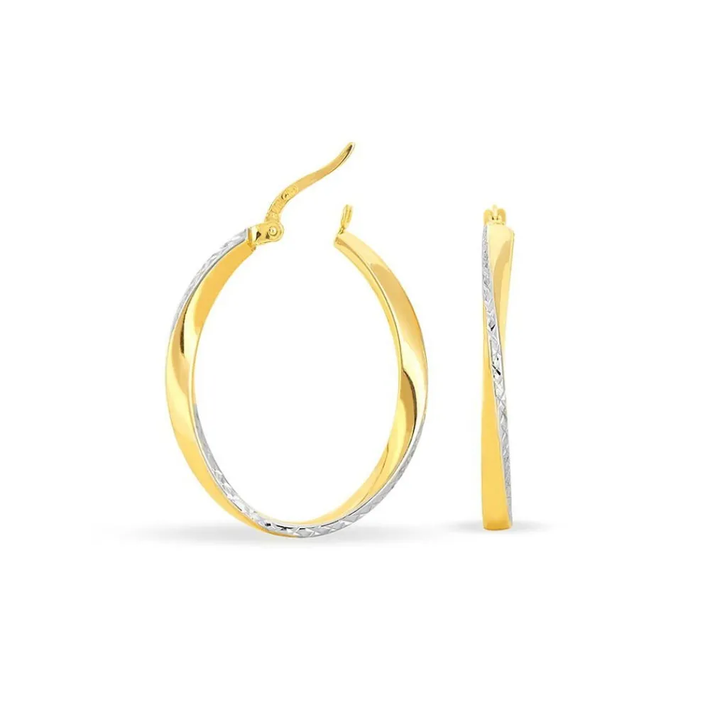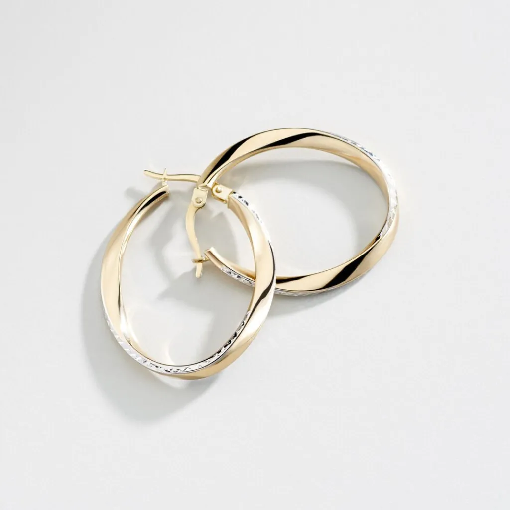 Créoles Or Jaune 375/1000 Fil Vrillé Effet Diamanté Largeur 2.9mm Diamètre 32.2mm