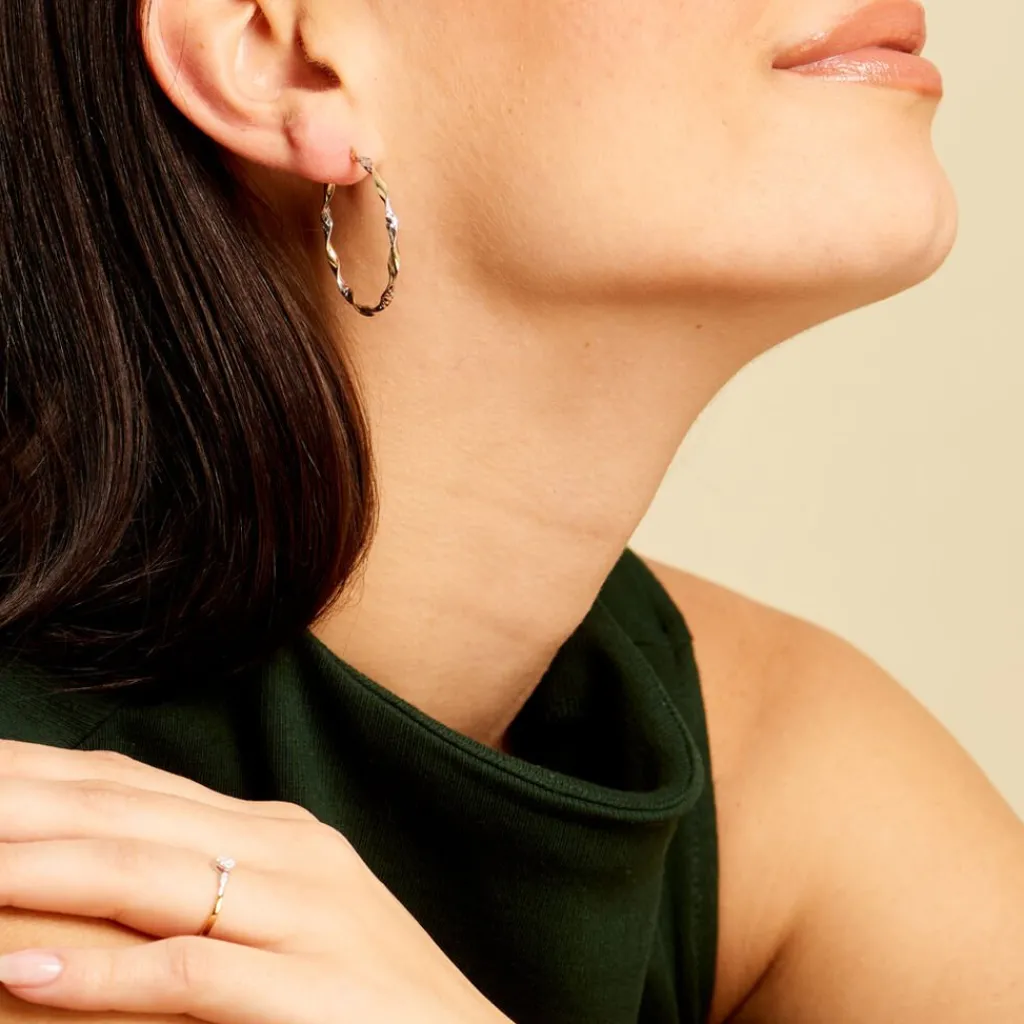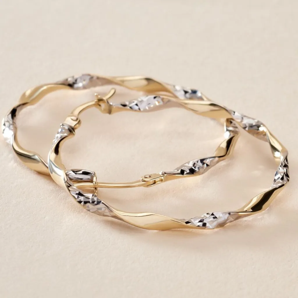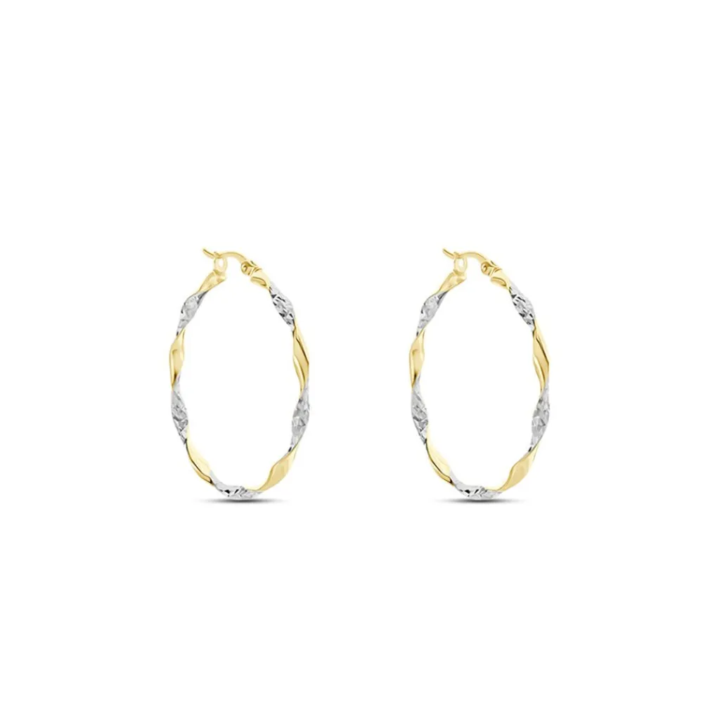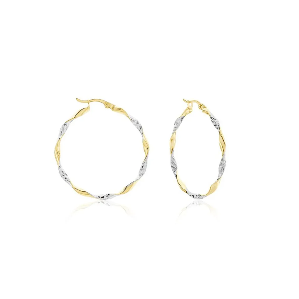 Créoles Or Bicolore 375/1000 Fil Vrille Effet Diamanté Largeur 2.3mm Diametre 30mm