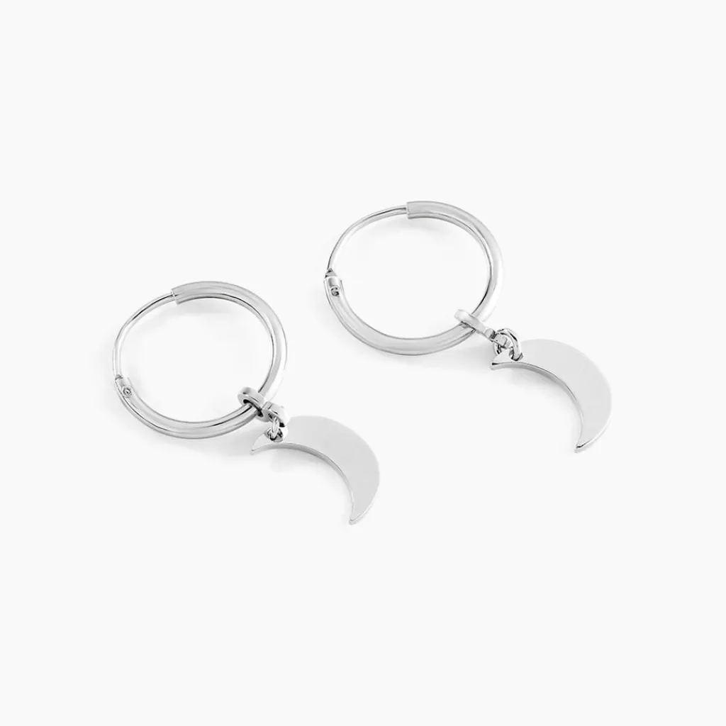 Creoles Argent Blanc 925/1000 Pampilles Motifs Lunes Diametre 12mm