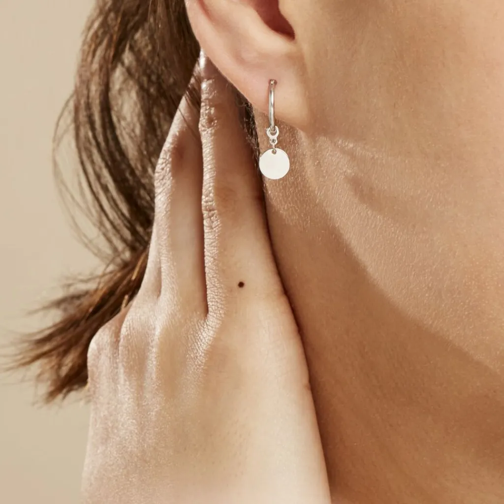 Creoles Argent Blanc 925/1000 Pampilles Motifs Pastilles Diametre 12mm