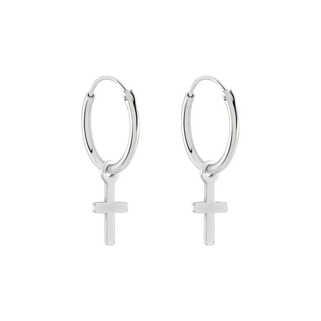 Creoles Argent Blanc 925/1000 Pampilles Motifs Croix Diametre 12mm