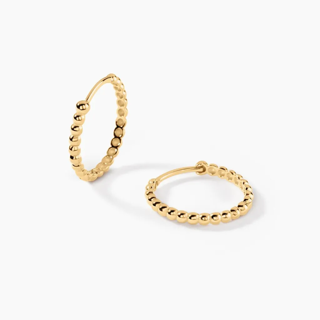 Créoles Or Jaune 375/1000 Effet Boules Largeur De Fil 1Mm Diametre 15Mm