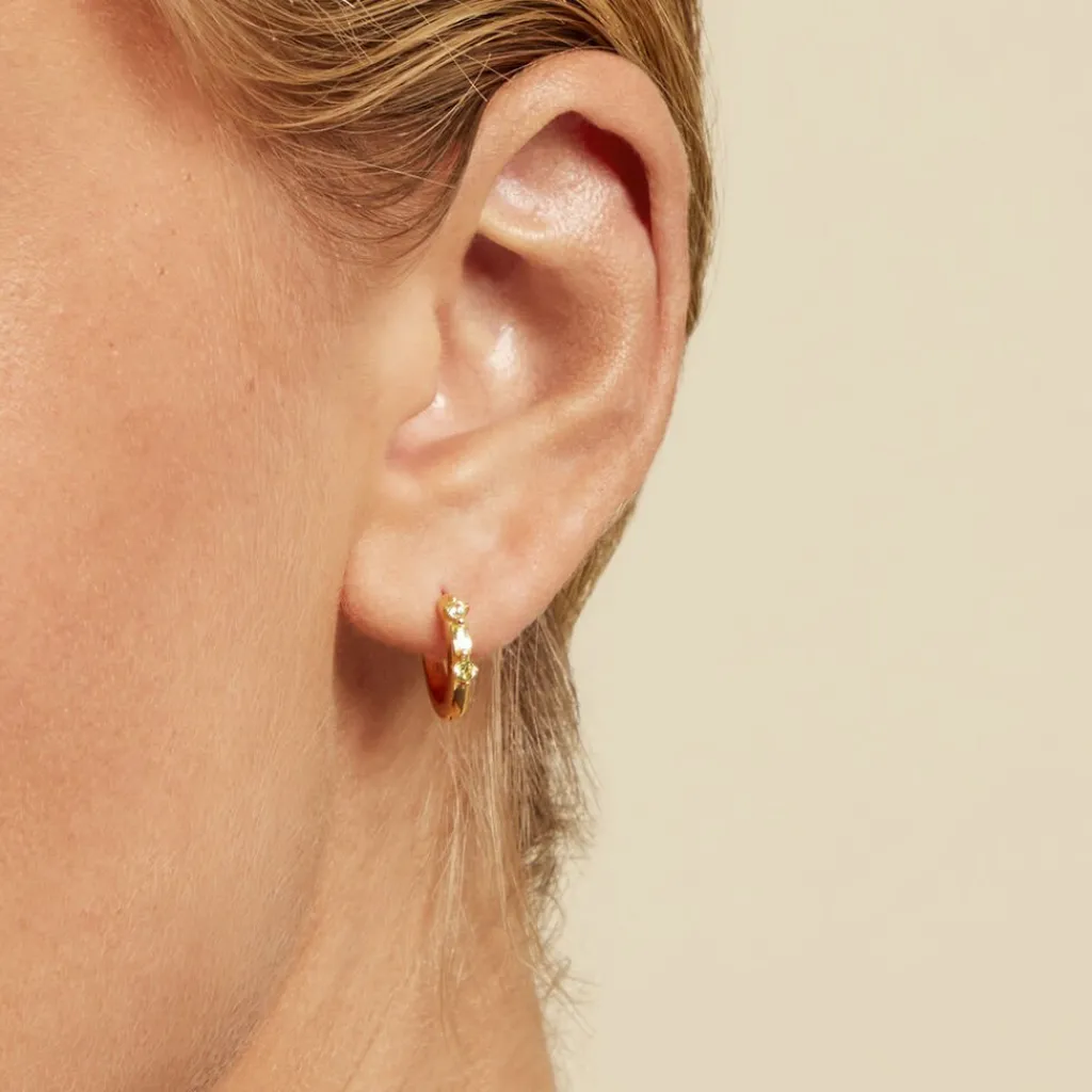 Créoles Plaqué Or Jaune Oxydes De Zirconium Verts Rectangles Accompagnés Diamètre 9mm