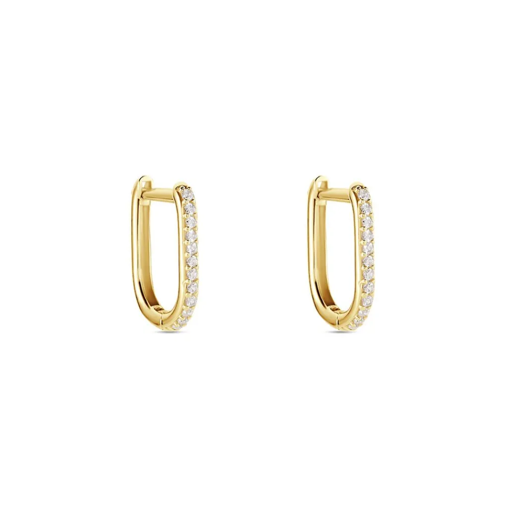 Créoles Rectangulaires Or Jaune 375/1000 Oxydes De Zirconium Serti 4 Griffes