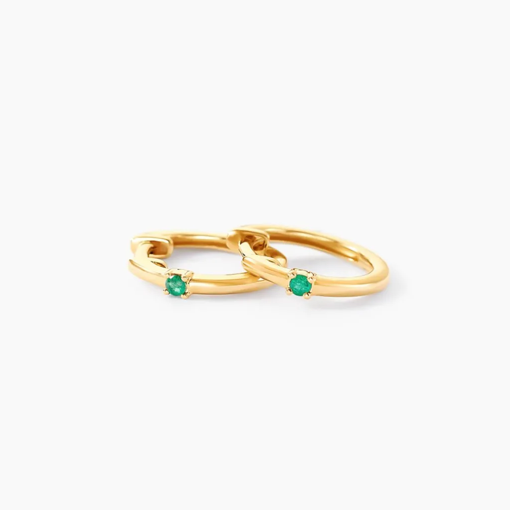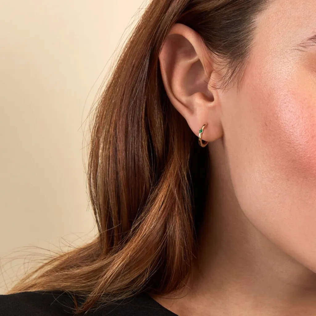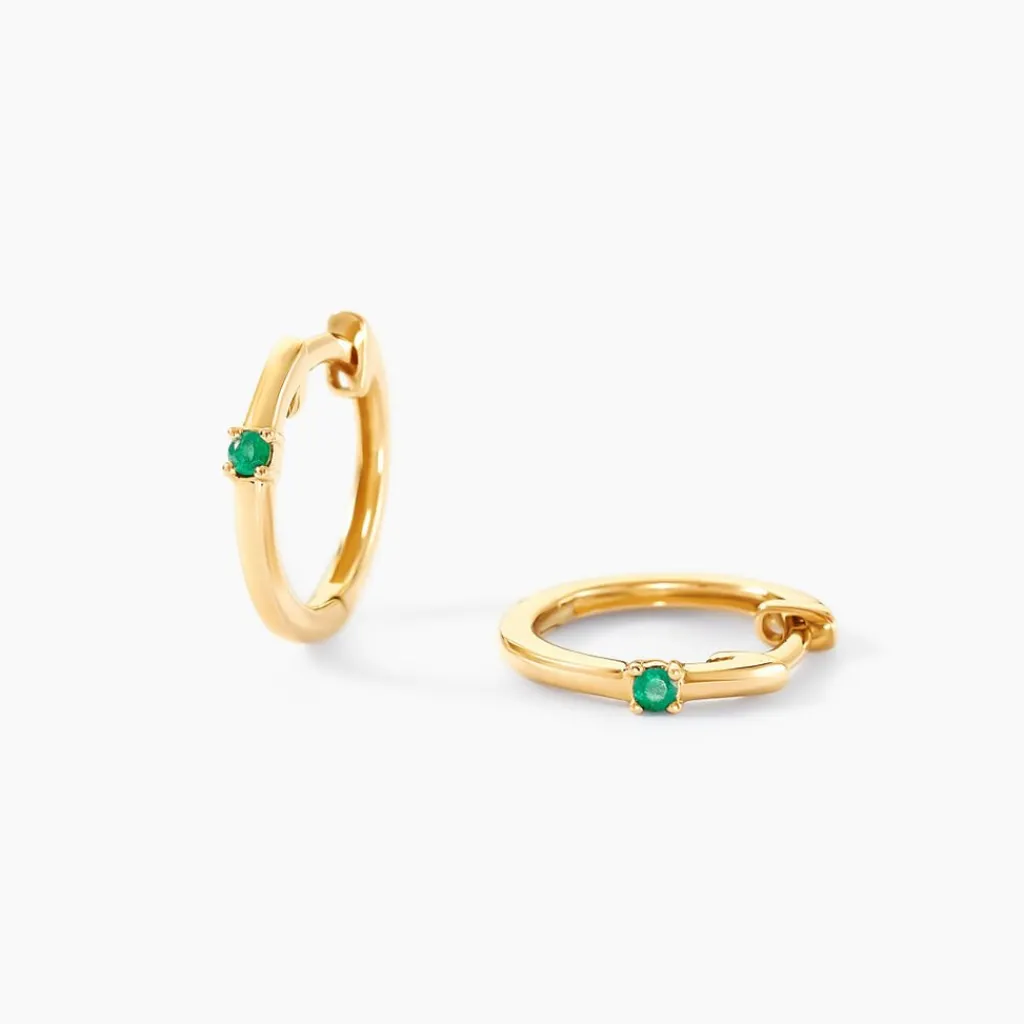 Creoles Or Jaune 375/1000 Emeraudes Rondes 0.08cts Serti Griffes Diametre 10.4mm
