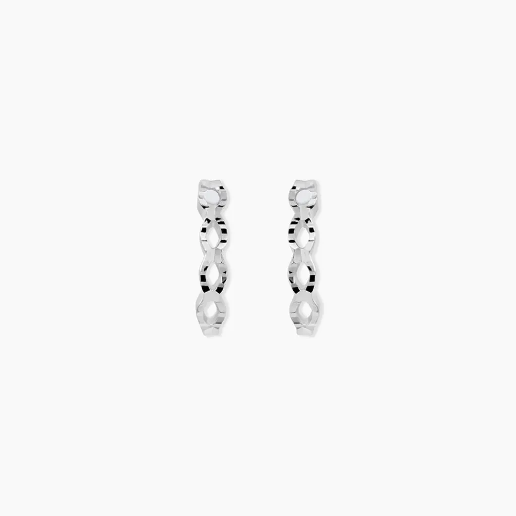 Demi Creoles Argent Blanc 925/1000 Vagues Entrelacees Effets Diamantes