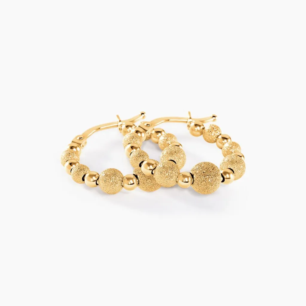 Creoles Or Jaune 750/1000 Degrade Boules Sablees Et Lisses Diametre 18mm