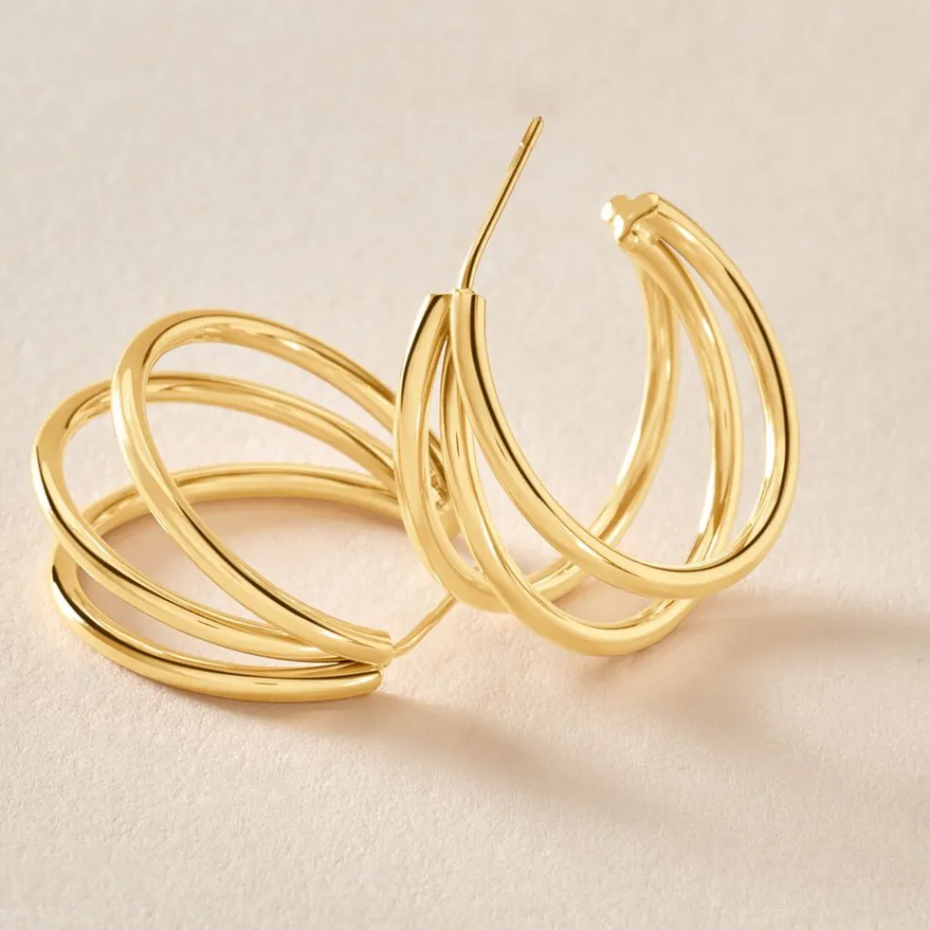 Créoles Acier Inoxydable Jaune Triples Rangs Diametre 20mm