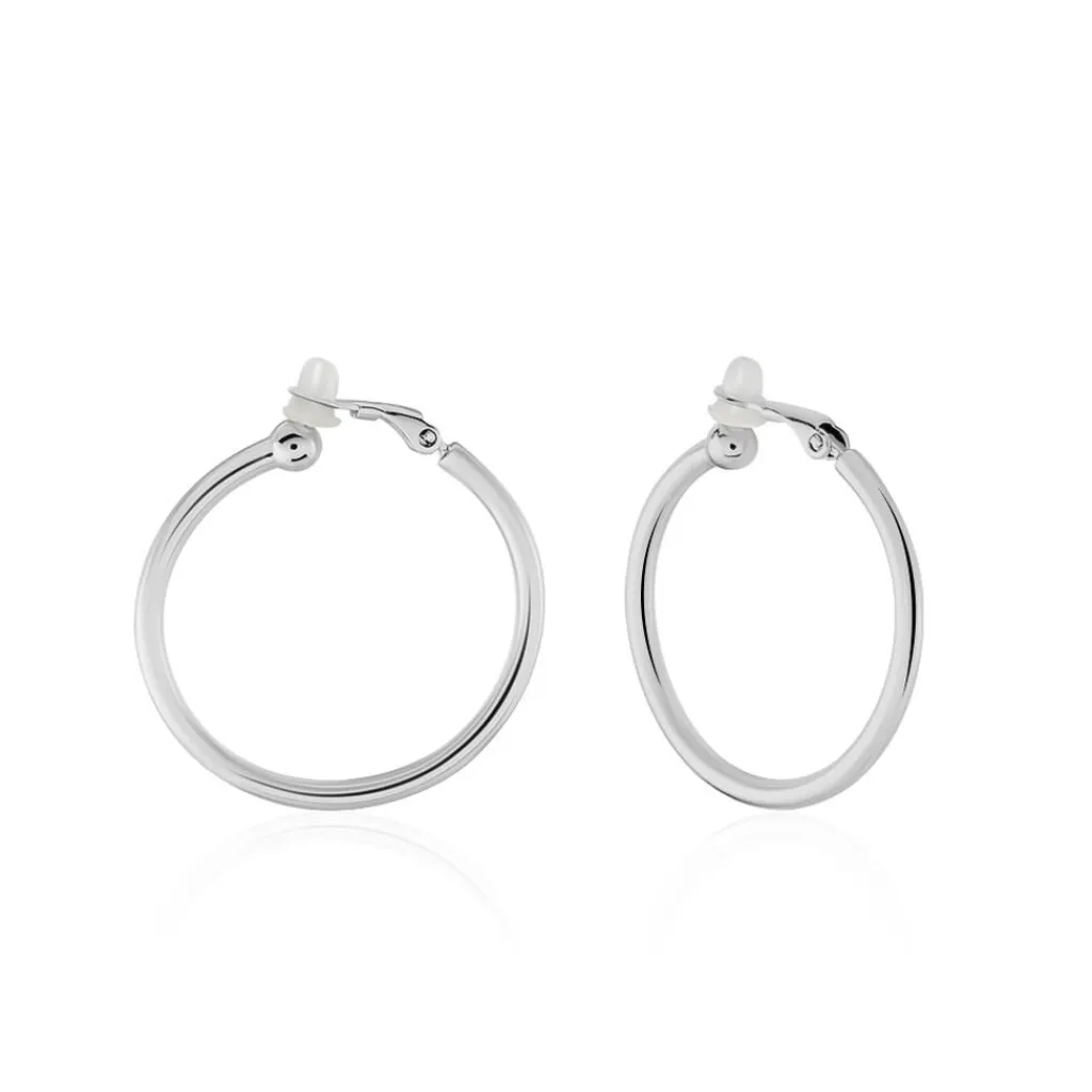 Creoles Argent Blanc 925/1000 Fils Ronds Largeur 13mm Diametre 22mm Fermeture Clips