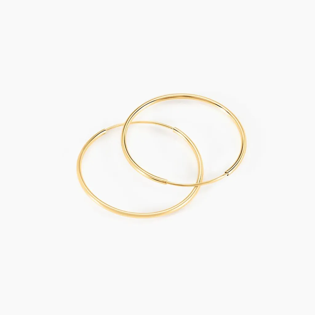 Créoles Or Jaune 750/1000 Fil Flexible Lisse Largeur 0.8mm Diamètre 17mm