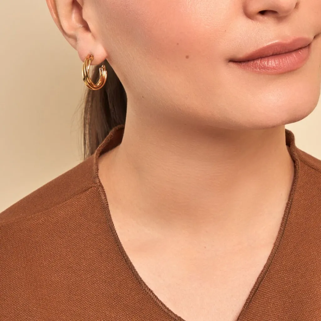 Créoles Acier Inoxydable Jaune Multi Fils Entrelacés Largeur 5mm Diamètre 21.3mm