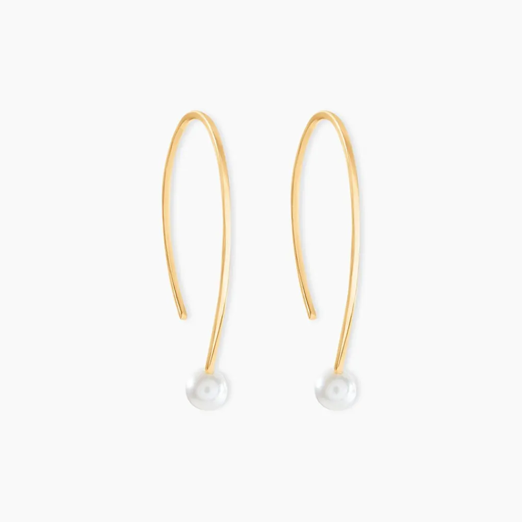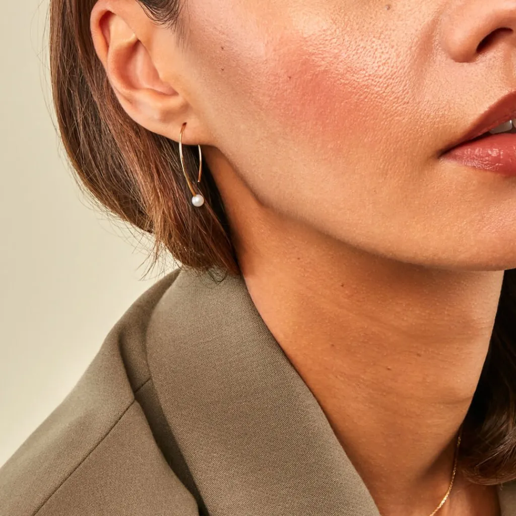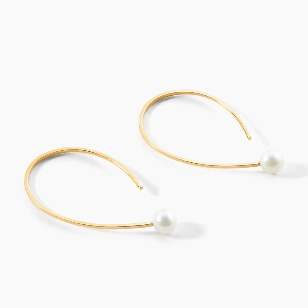 Creoles Or Jaune 375/1000 Amandes Perles De Culture 4/4,5Mm