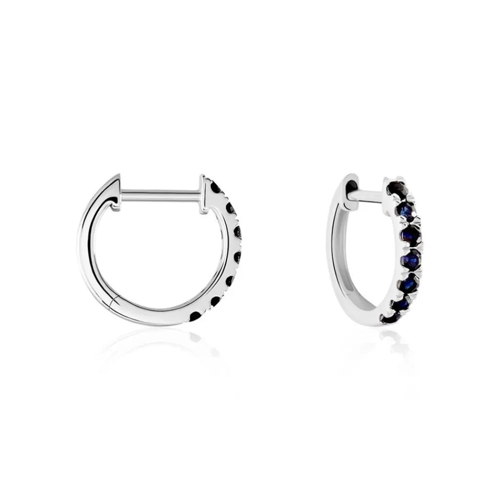 Créoles Or Blanc 375/1000 Pavage Saphir Bleus 12mm