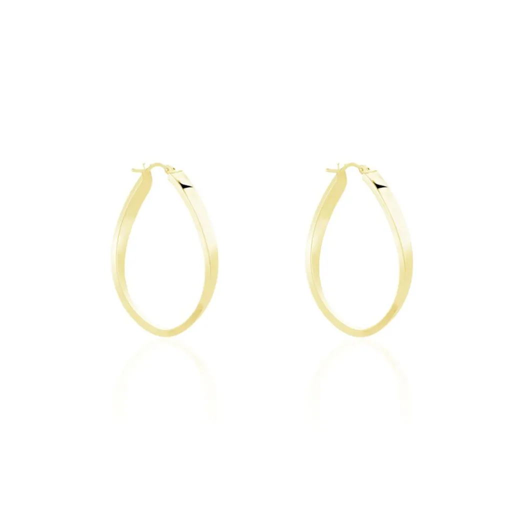 Créoles Or Jaune 375/1000 Forme Vague Fil Carre Lisse Epaisseur 2mm Diamètre 30mm