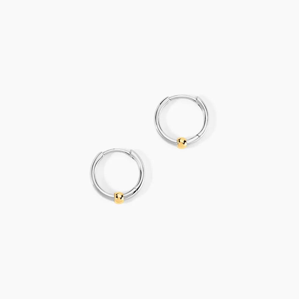 Créoles Or Jaune 375/1000 Et Argent Blanc 925/1000 Motif Boule Diametre 7Mm