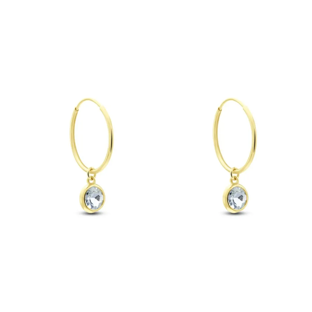 Créoles Or Jaune 375/1000 Topaze Azur Serti Clos 15mm