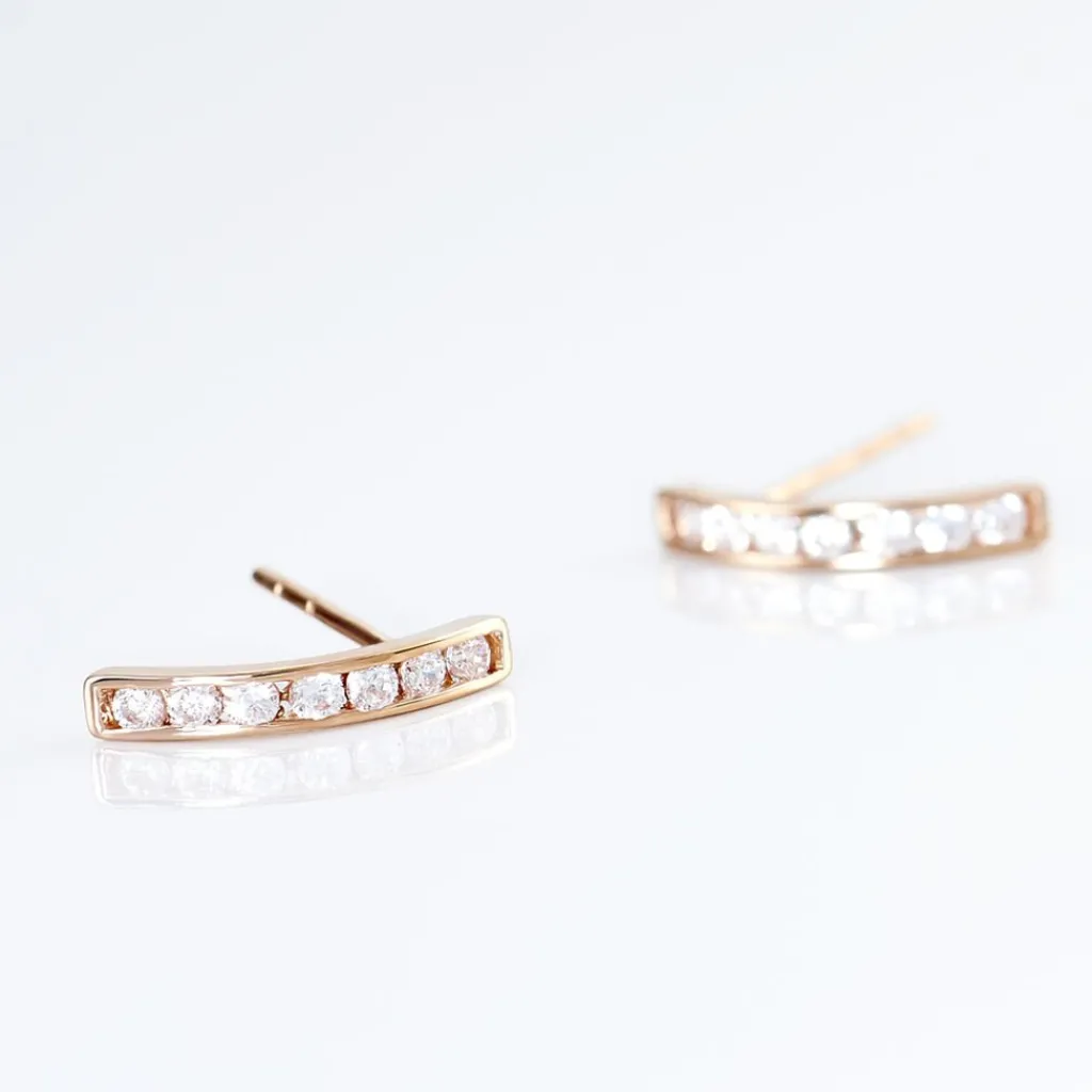 Créoles Or Jaune 375/1000 Demi Cercle Oxydes De Zirconium