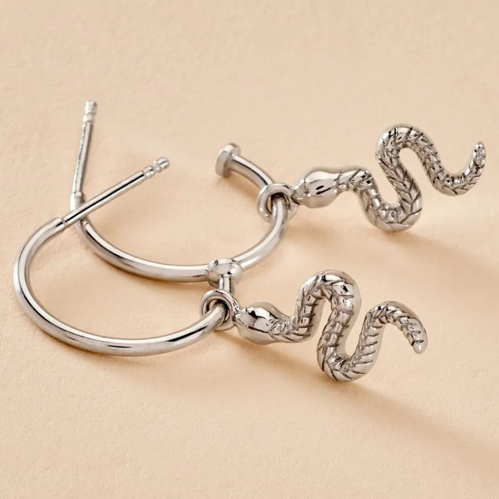 Creoles Argent Blanc 925/1000 Pampilles Serpents Diametre 18mm