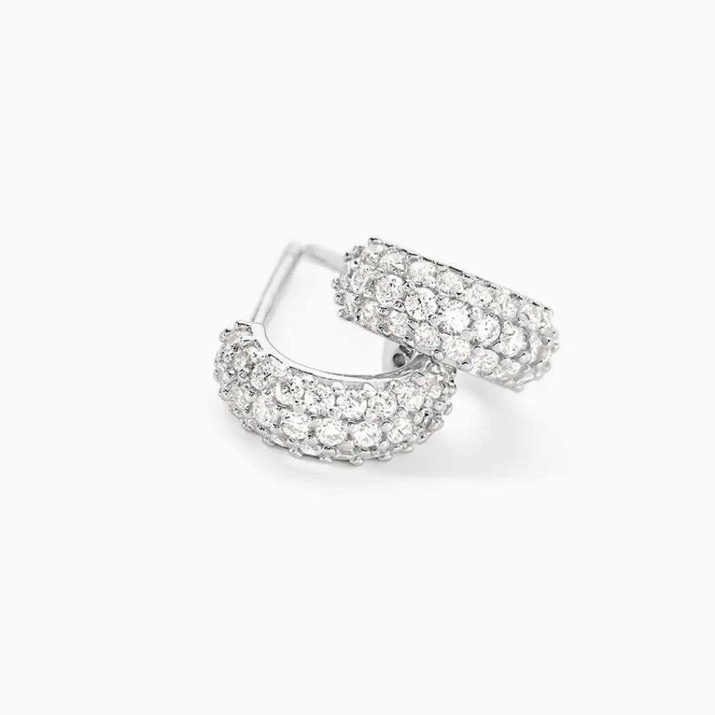 Créoles Argent Blanc 925/1000 Pavage Oxydes De Zirconium Diamètre 6mm