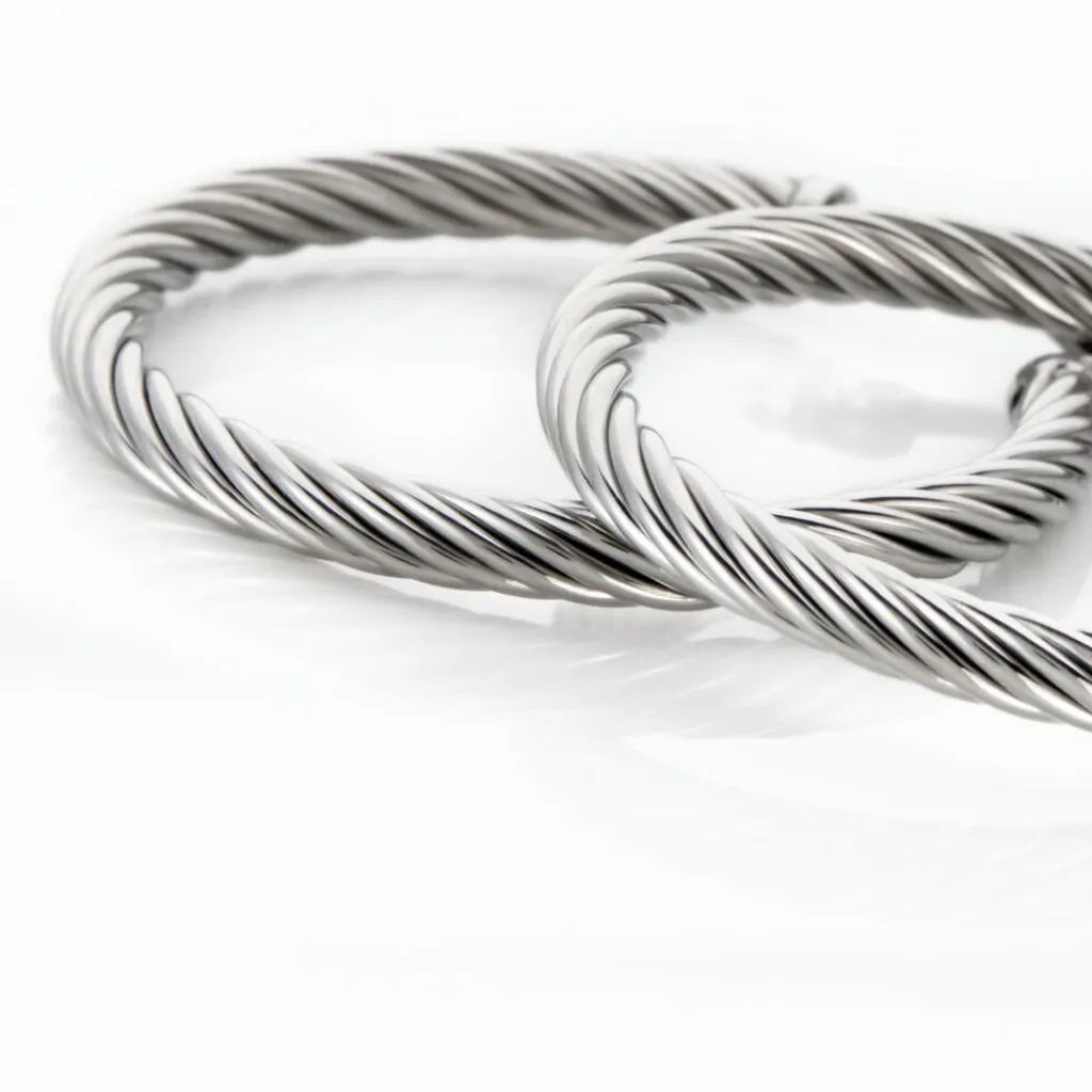 Creoles Acier Gris Effet Twiste Largeur 2.9mm Diametre 30mm