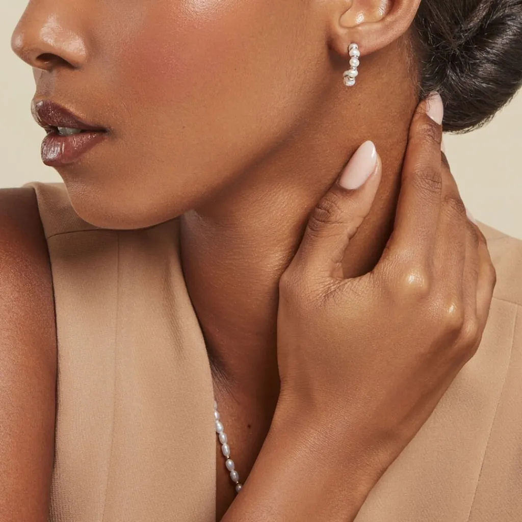Créoles Argent Blanc 925/1000 Perles De Culture Diamètre 8mm