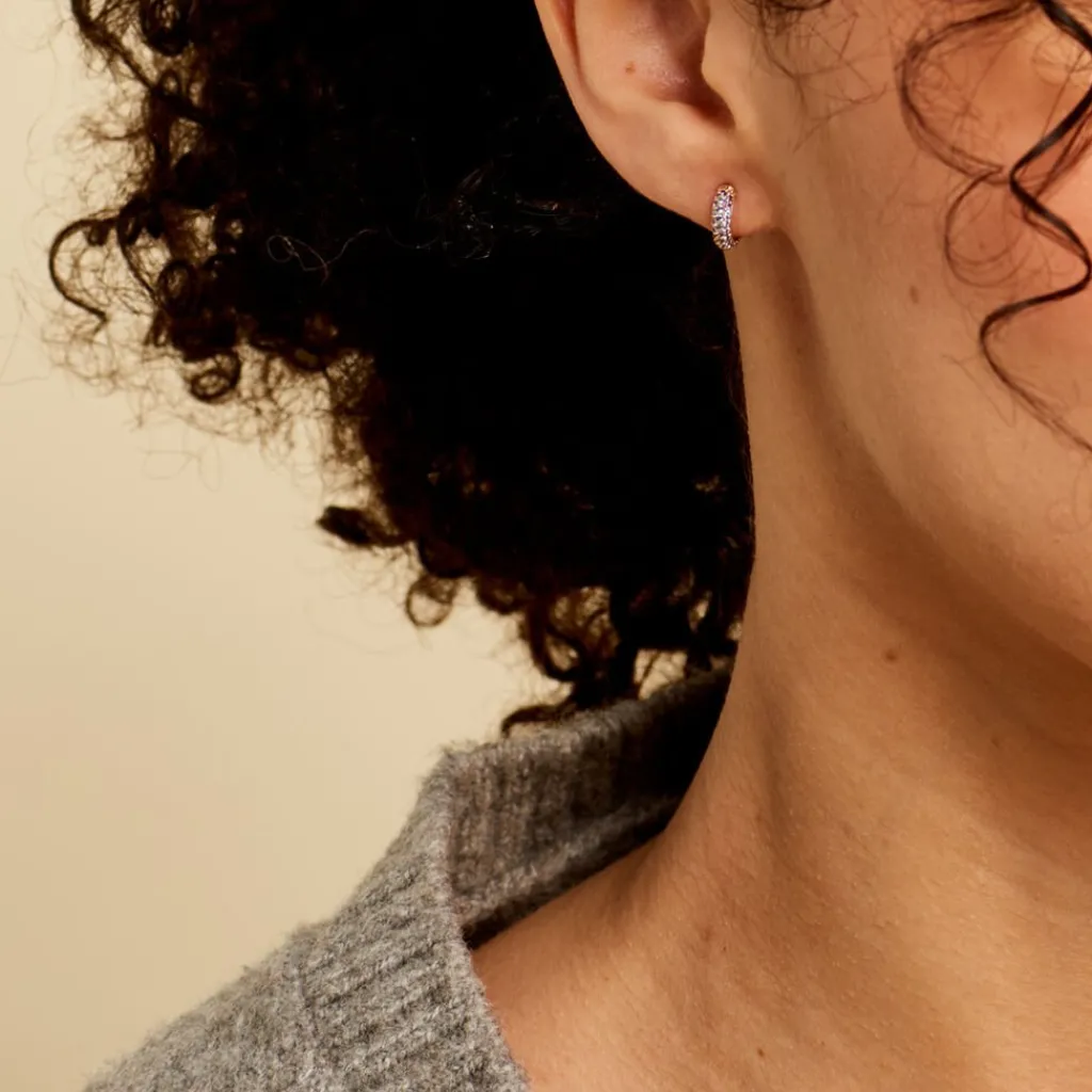 Créoles Plaqué Or Jaune Pavage Oxydes De Zirconium Bleus Diamètre 7mm