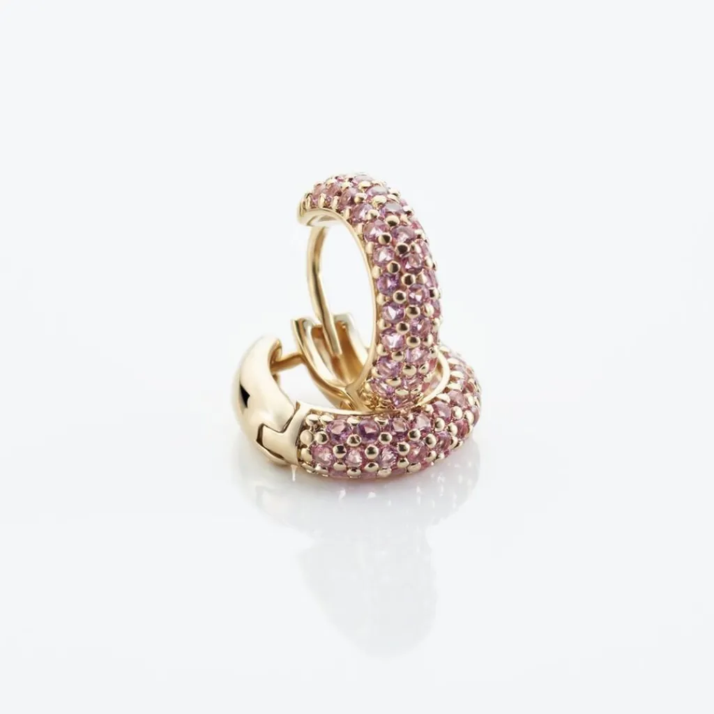 Créoles Plaqué Or Jaune Pavage Oxydes De Zirconium Roses Diamètre 7mm