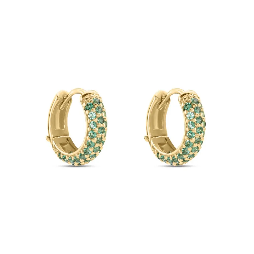 Créoles Plaqué Or Jaune Pavage Oxydes De Zirconium Verts Diamètre 7mm
