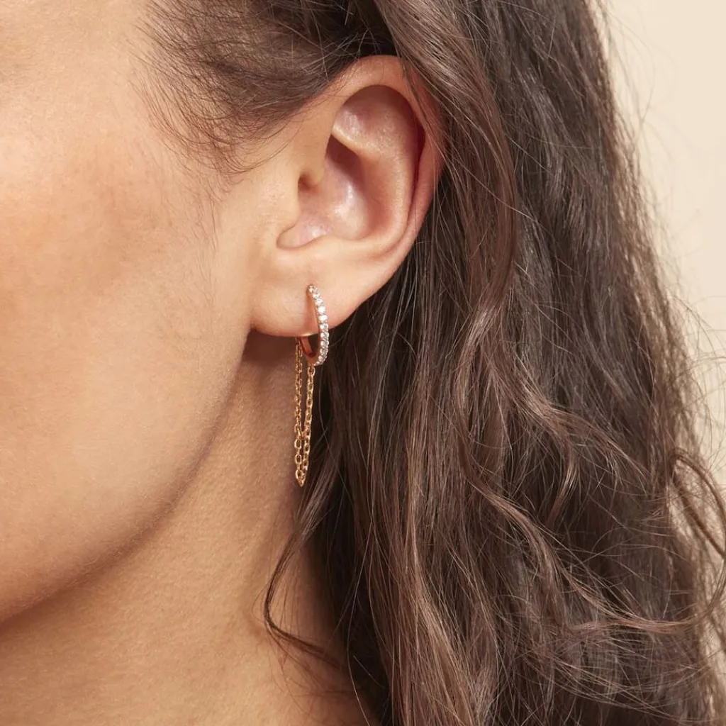 Creoles Plaque Or Jaune Double Chaines Maille Forcat Pavage Oxydes De Zirconium Diametre 12*9mm