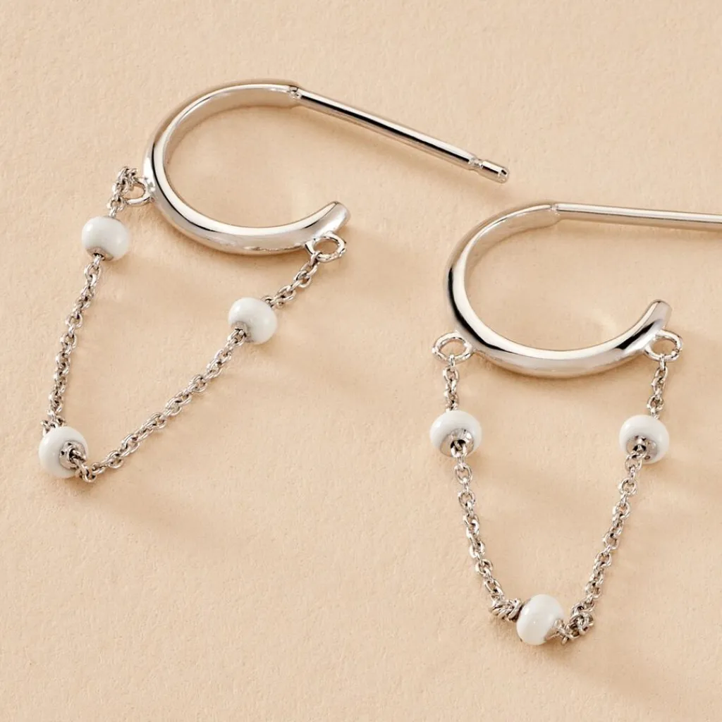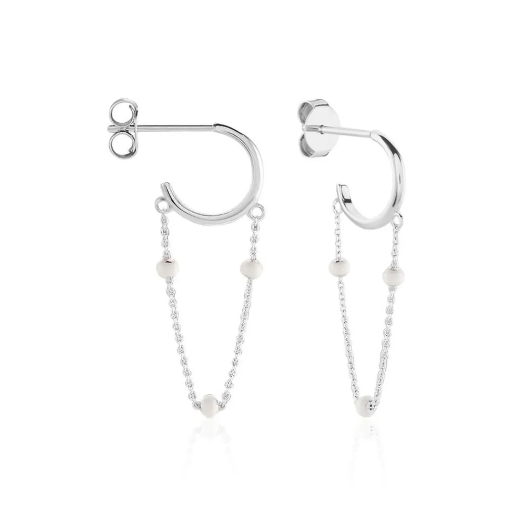 Créoles Argent Blanc 925/1000 Email Blanc Maille Forçat 4.3cm Diamètre 8mm