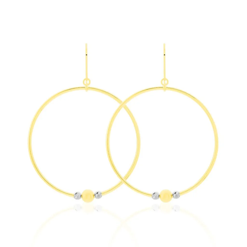 Creoles Or Jaune 375/1000 Cercle Et Billes Diamantees Bicolores Fil 1.2mm Diametre 35mm