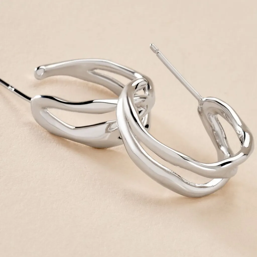 Creoles Argent Blanc 925/1000 Forme Organique Diamètre 16mm