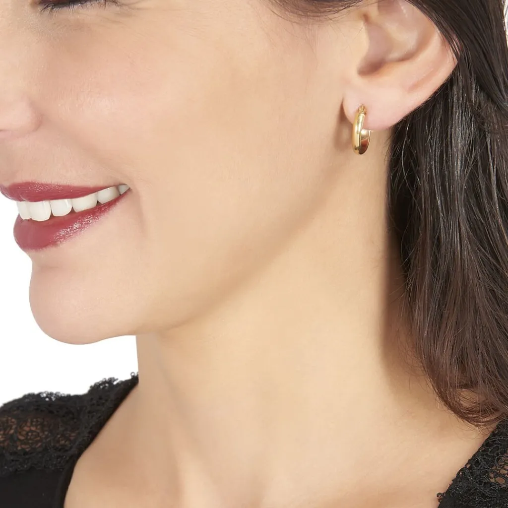 Créoles Or Jaune 375/1000 Ovales Fil Demi Jonc Lisse Largeur 3mm Diamètre 18x14mm