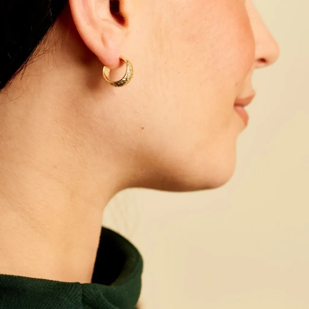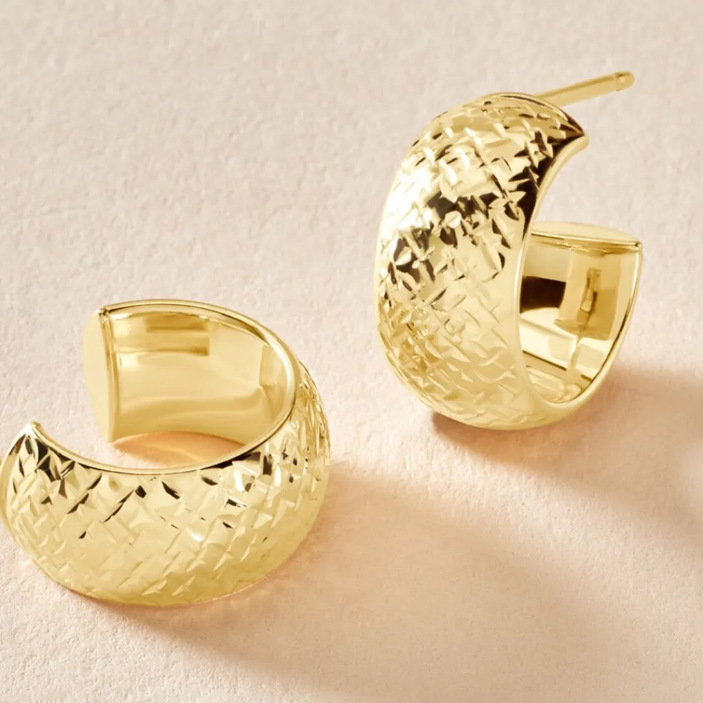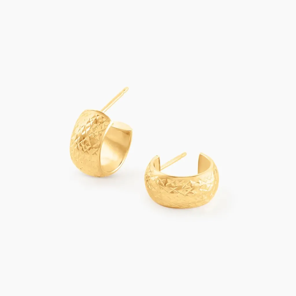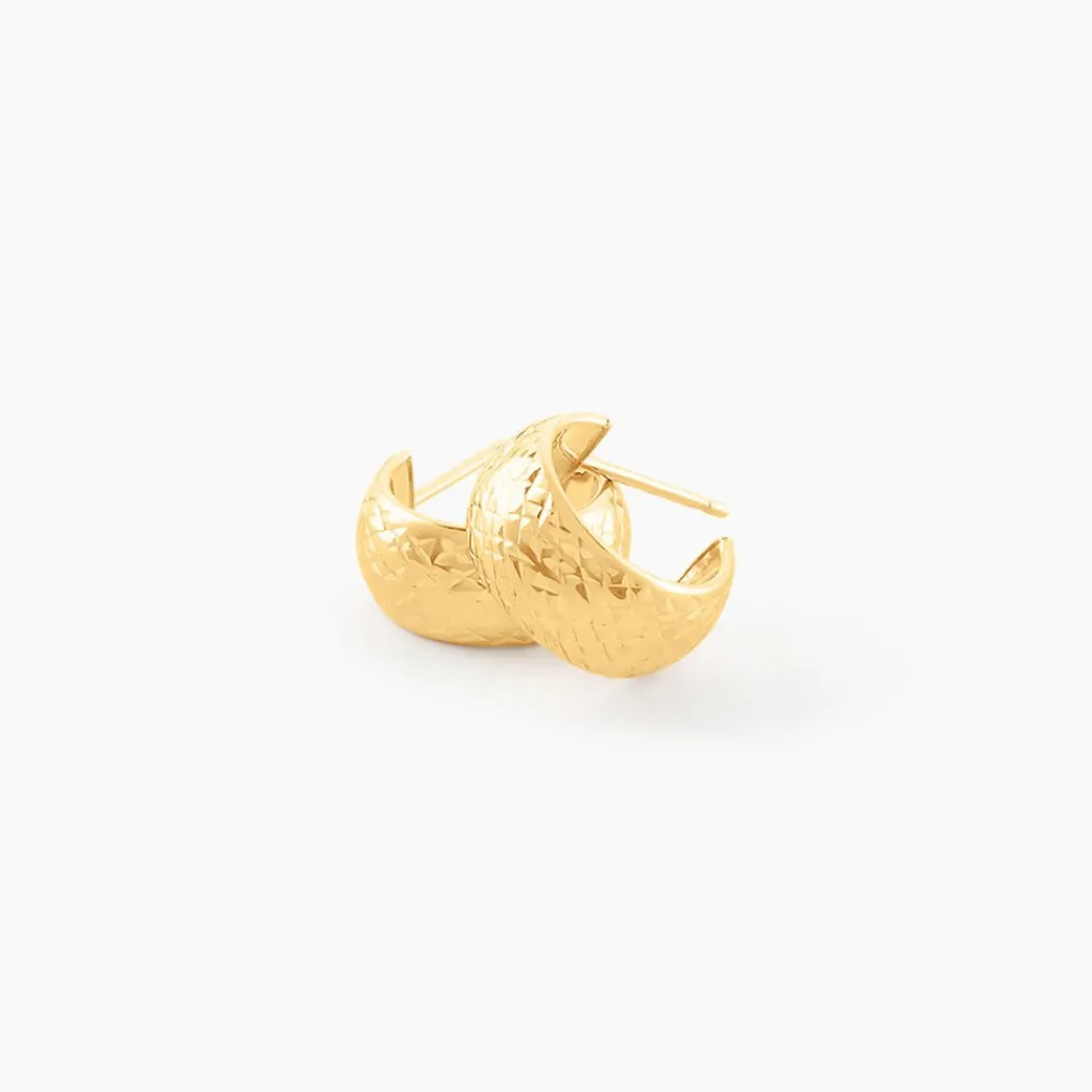 Demi Créoles Or Jaune 375/1000 Fil Carré Effet Martele Diamètre 10mm