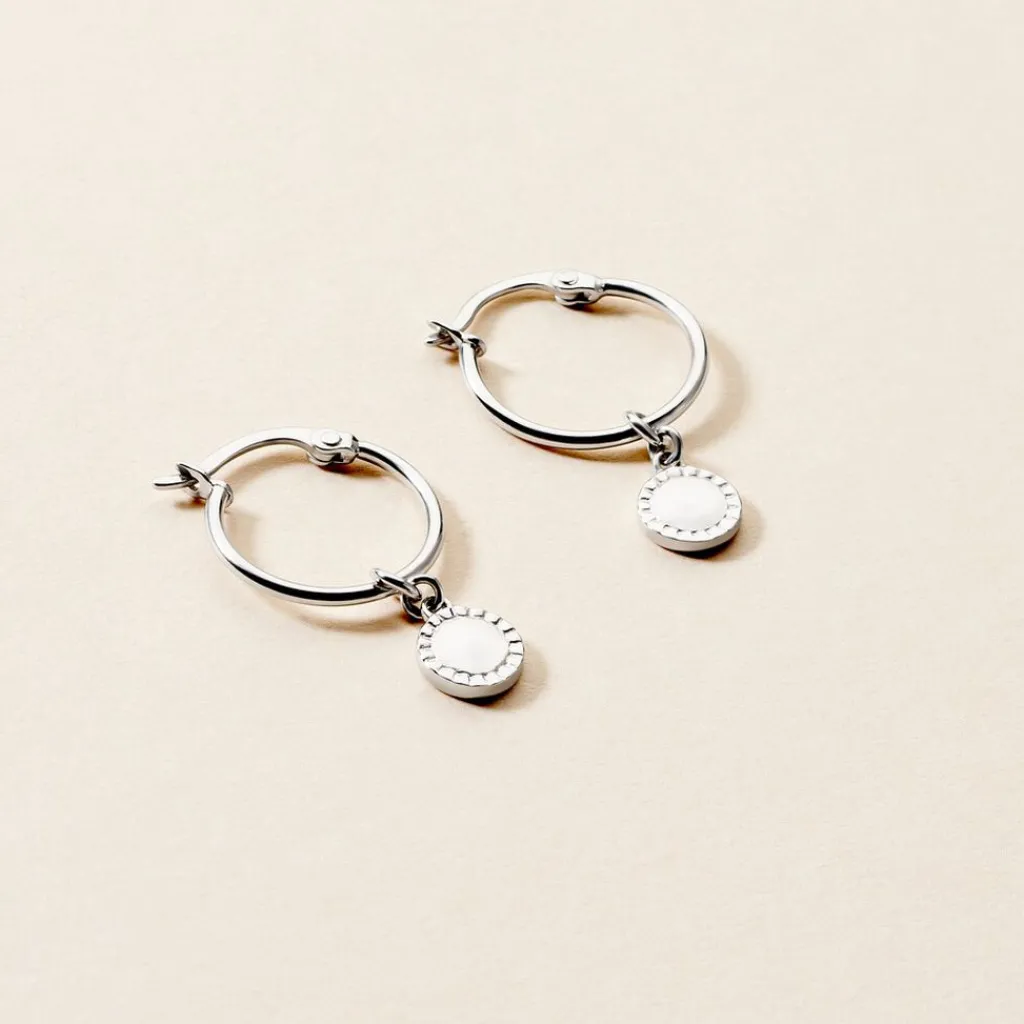 Créoles Argent Blanc 925/1000 Pastilles Effet Perle Diametre 13mm