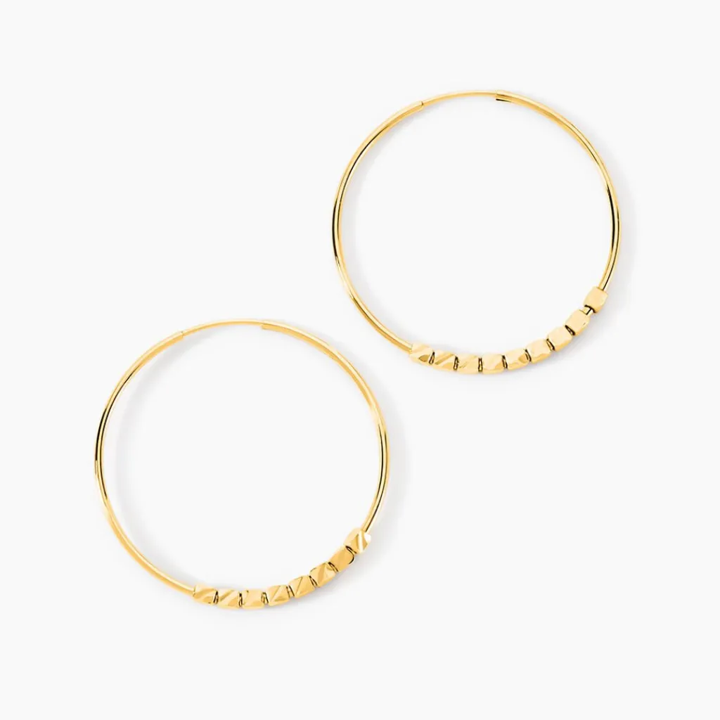 Créoles Or Jaune 375/1000 Flexibles Ornement Carré Largeur De Fil 1Mm Diametre 30Mm
