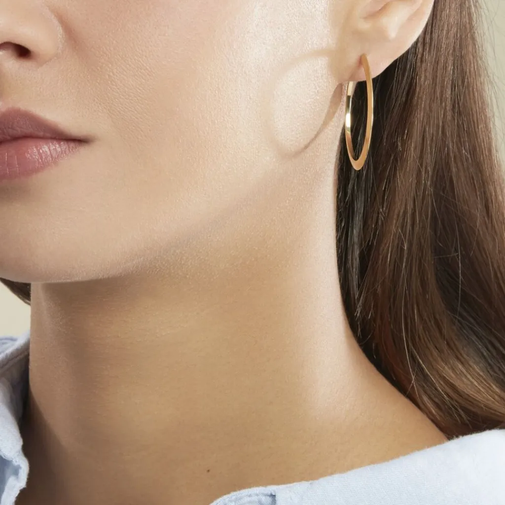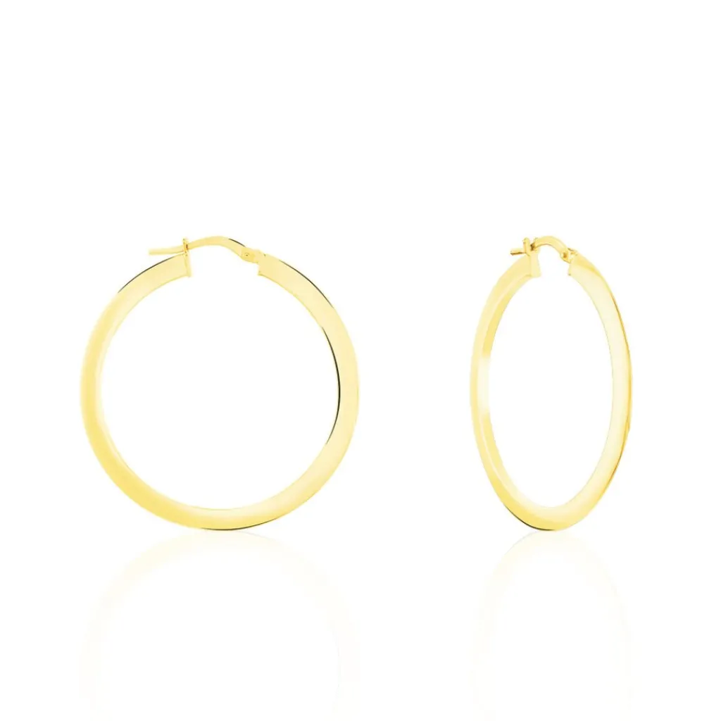 Créoles Or Jaune 375/1000 Fil Triangle Lisse Largeur 0.5mm Diamètre 30mm