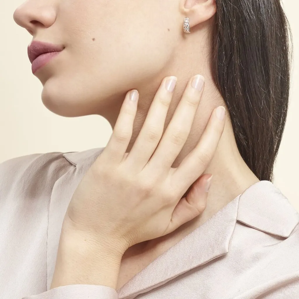 Demi Creoles Argent Blanc 925/1000 Motifs Petits Losanges Ajoures Effet Diamante