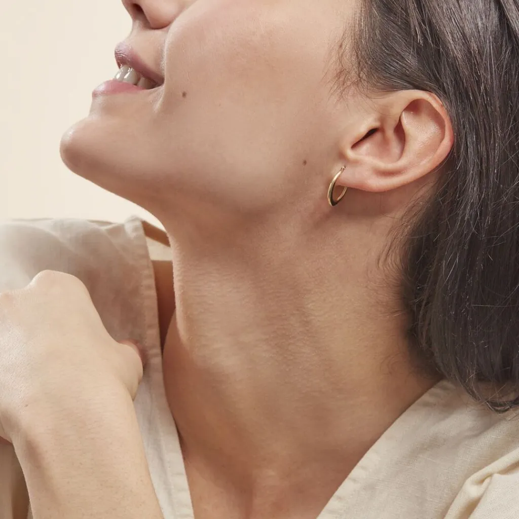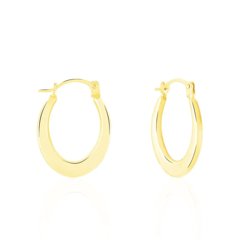 Créoles Or Jaune 375/1000 Ovales Fil Bombe Lisse Largeur 1.90mm Diamètre 17×12.7mm