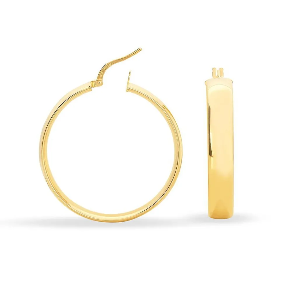 Créoles Or Jaune 375/1000 Fil Demi Jonc Lisse Largeur 6mm Diamètre 30mm