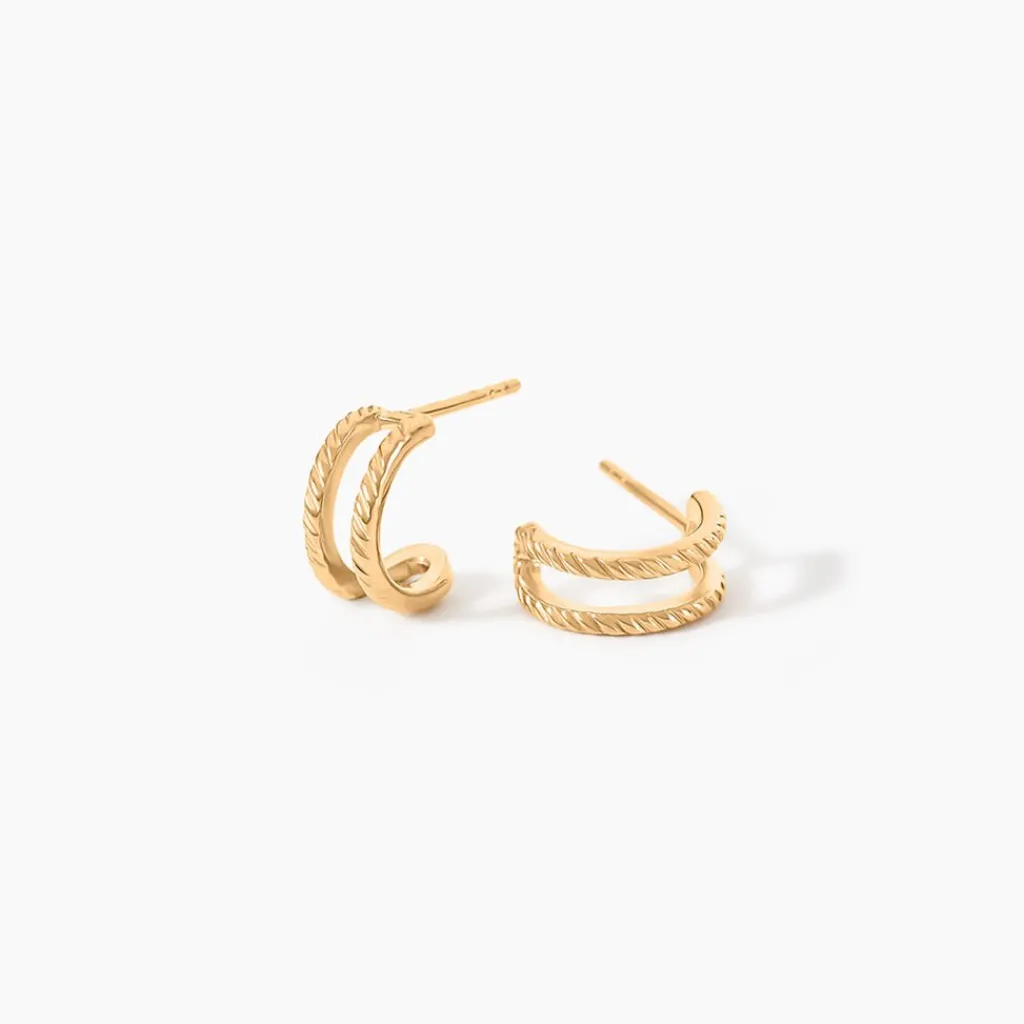 Créoles Plaqué Or Jaune Double Rang Ajouré Diamètre 9Mm