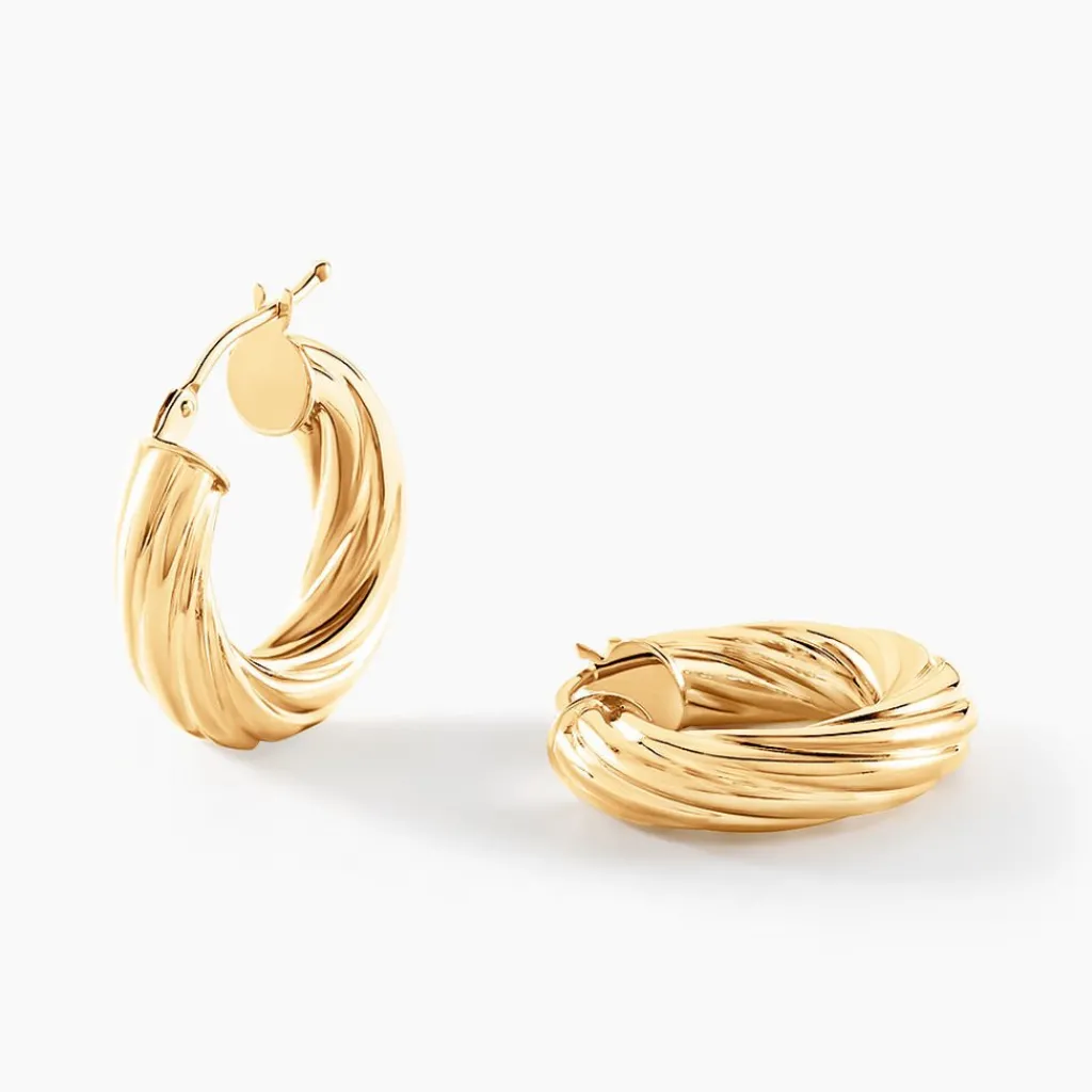 Créoles Or Jaune 375/1000 Fil Rond Torsade Diamètre 10mm