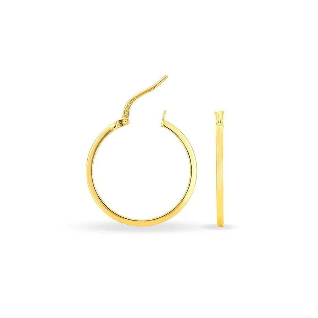 Créoles Or Jaune 375/1000 Fil Carré Lisse Largeur 1.5mm Diamètre 20mm