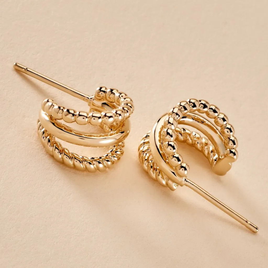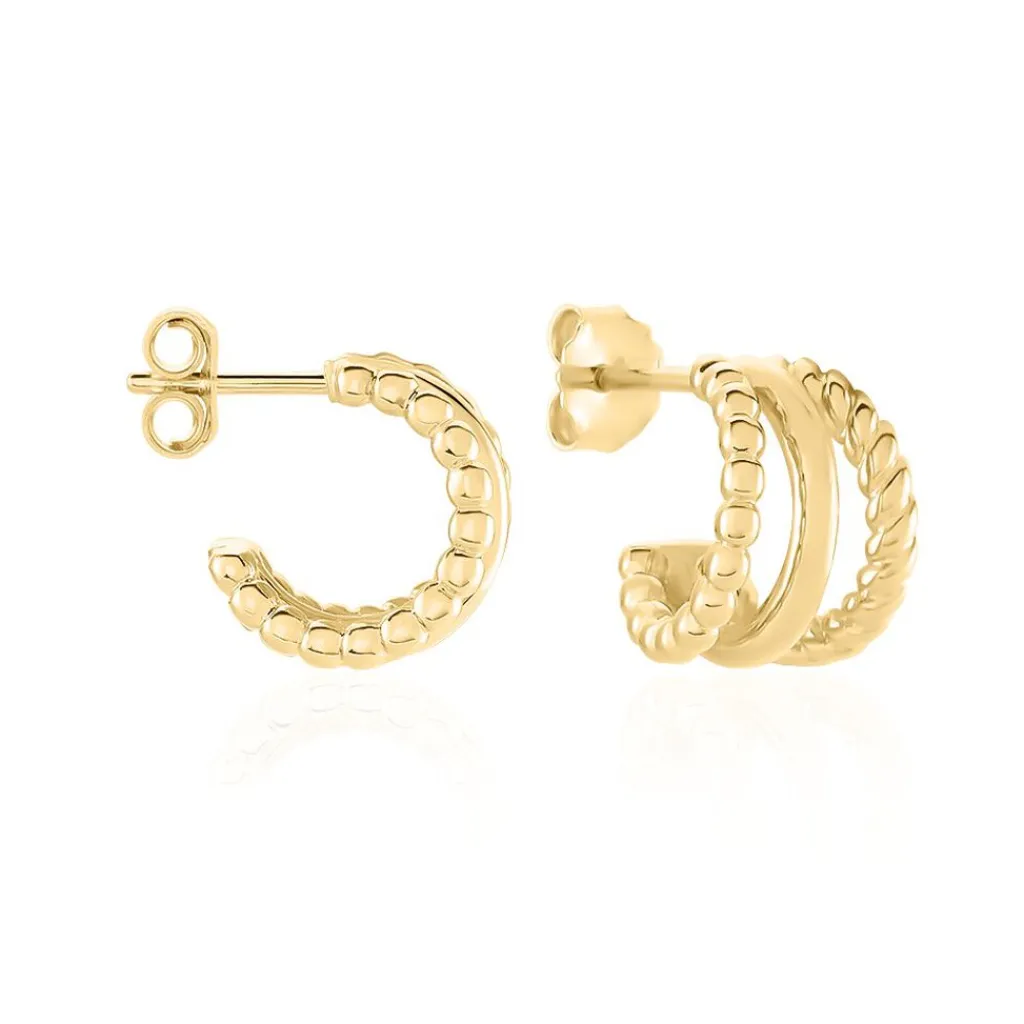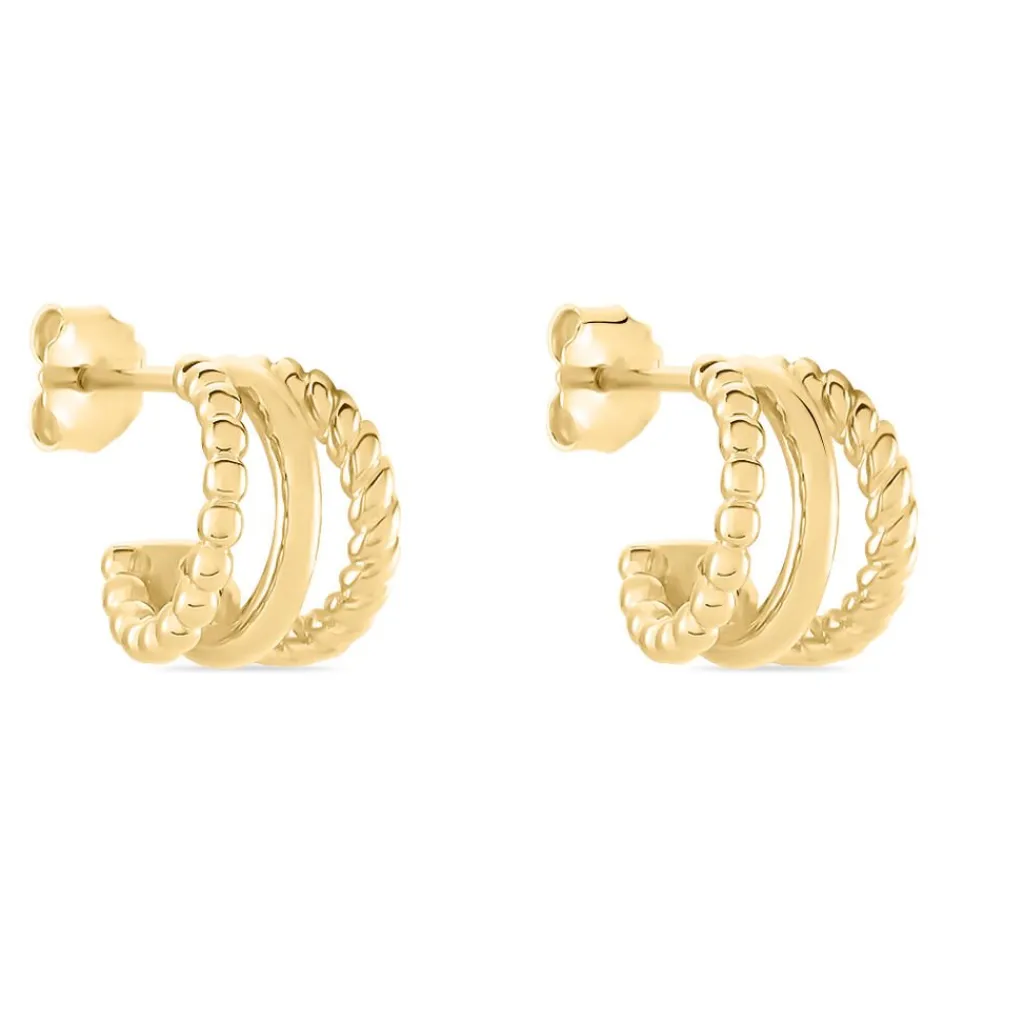 Créoles Plaqué Or Jaune Triple Rangs Torsadés Et Lisses Diamètre 9mm