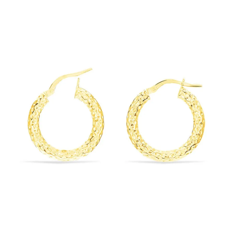 Créoles Or Jaune 375/1000 Fil Rond Martele Largeur 3mm Diamètre 15mm