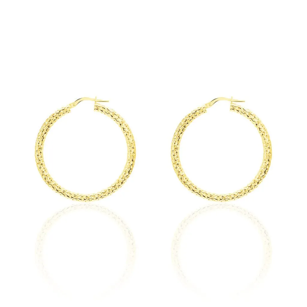 Créoles Or Jaune 375/1000 Fil Rond Martele Largeur 3mm Diamètre 30mm